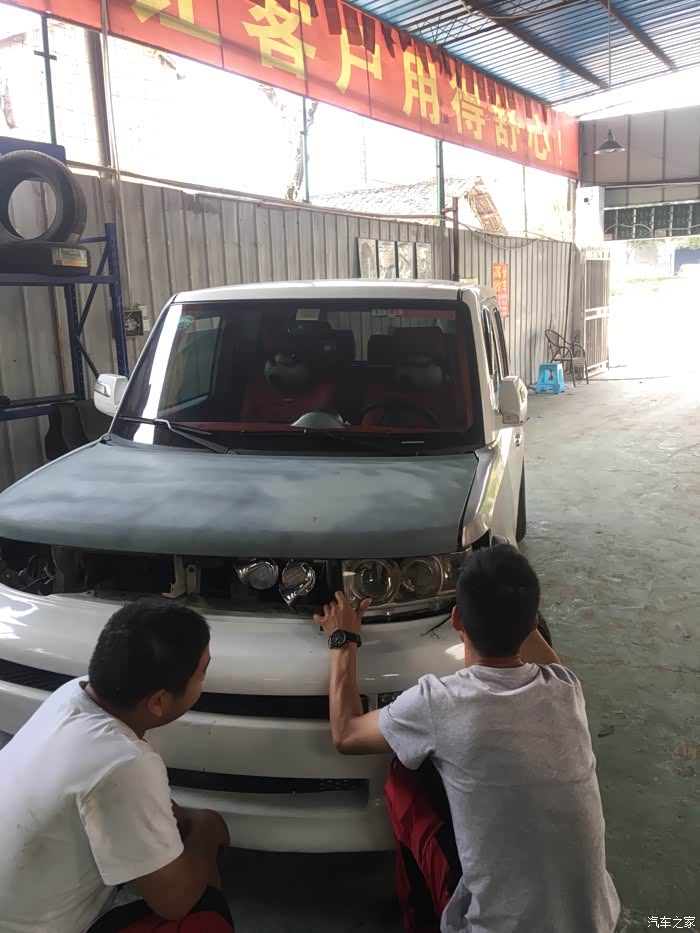 哈哈哈 上次改了顶棚自我感觉良好,去看了同城车友的BB头,心痒痒啊,各种收购 总算装B的配件收齐了,由于即将聚会 改车时间有限,提前了两个月去年审,预计五天出车,结果时间估算错误了,聚会改时间,好在修理厂没让我失望