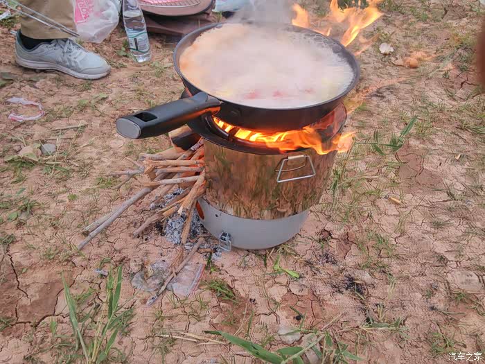 这是用多功能柴火炉野炊,架子是后备箱加高装置,现在已经淘汰了