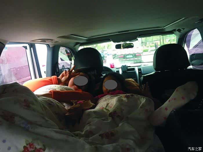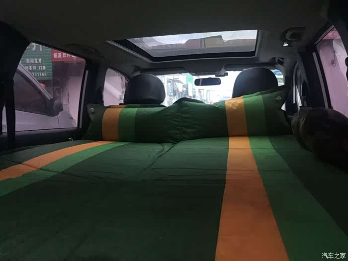 这是单座放倒后铺个小床,适合小长途,孩子或老婆的专属”软卧“,如果两人都同时睡觉,可放倒主驾后面的宽座或全部放倒,平时野营时,娘俩睡车里,我睡帐篷,由于天气原因,我有时也睡车里,但我的床比你们的床要宽25厘米,你们后面宽度是1.1米,我是1.35米,看出原因没?