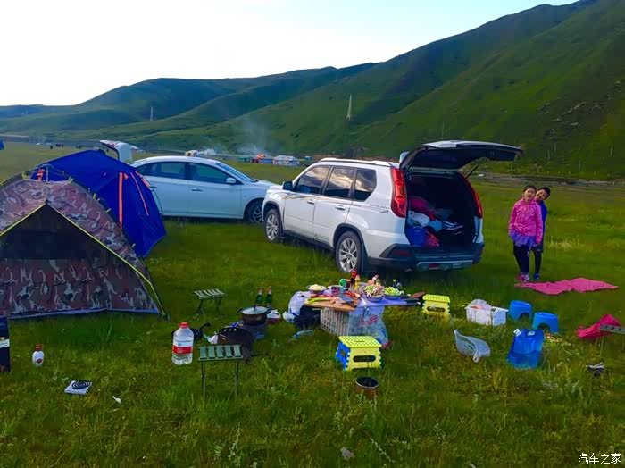 在色达野炊野营。8月的天气,白天18度,晚上5度
