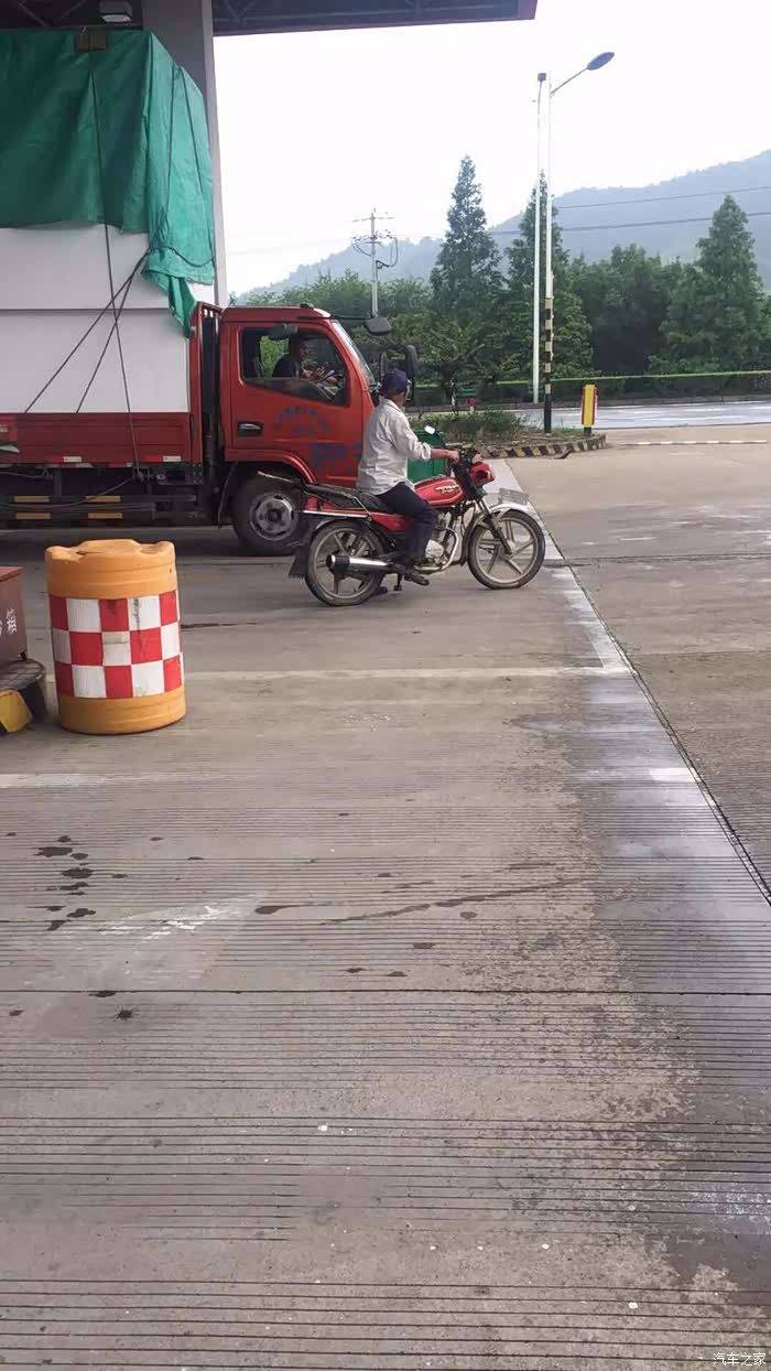 提车500公里的时候,一个人打算去趟安吉。跑一跑山路,结果还剩下50公里快到安吉的时候,下起来了大雨,正好附近有个加油站。这梅雨天气,真是可恶。