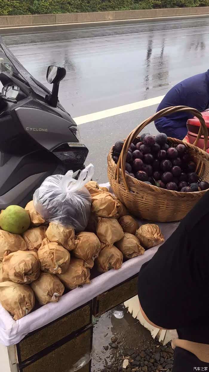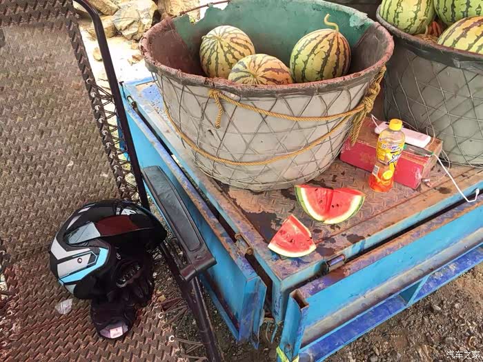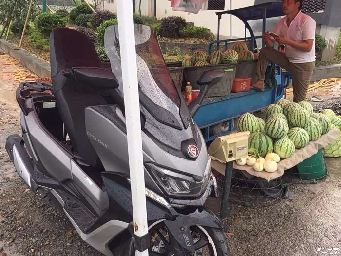 骑到富阳段,发现天越来越黑了。我本想在坚持一下,结果发现,刚出隧道口,一场暴雨把我淋了个全湿,附近正好有瓜农卖西瓜,让这个大哥给我让我位置。大哥也非常的热情。弄我有点不好意思了。就买个西瓜