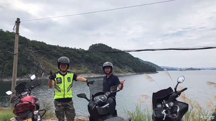 光阳300和RT3放一起。侧面看上去还是很有差距的,而且300的提速感觉比RT3起步阶段要快很多。这张刚刚是到达淳安县城。我小跑过去看千岛湖的美。