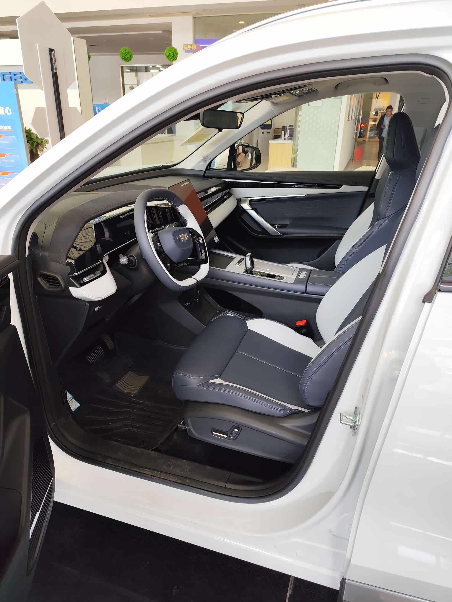 进入车内,24款博越L与23款博越L的区别就大喽!内饰整体风格偏智能科技风,我们23款黄棕内饰偏豪华风(我最近发现这个配色跟领克09的黄棕内饰配色很像?)配色是深蓝配白灰,感觉有点耐脏又不那么耐脏的感觉,如果是2.0智驾的全白内饰的话我提车回家第一件事就是装座椅套子了?。材质方面还是采用了大量的软质材料和皮质包裹,触感细腻,质感十足。