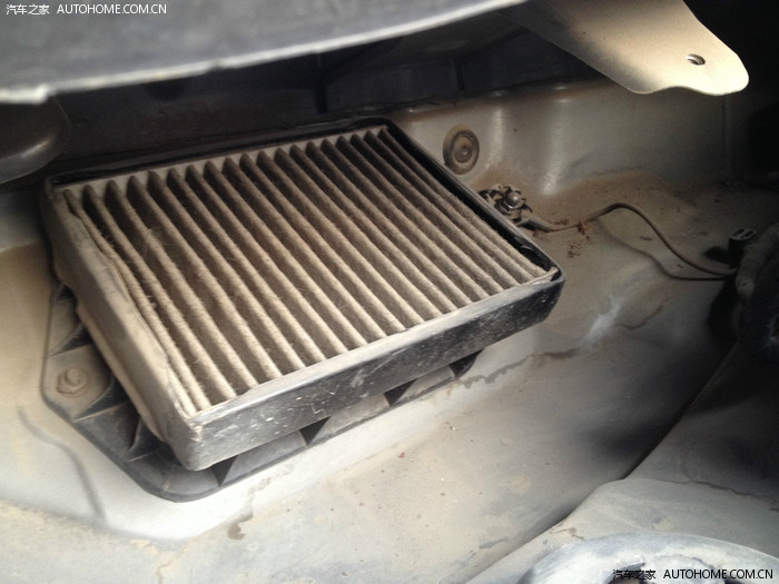 使用一段后的效果(因为过滤了外部进入车内空气的杂物,已经变得非常脏了)