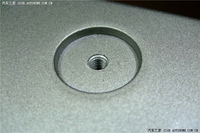 上背板的螺丝孔,可以看到箱体是铝合金的: