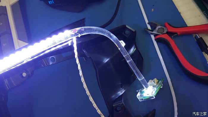 原车的示宽灯【位置灯】不够亮?改!用这种软灯条,把灯条抽出来,我用小螺丝拧紧,再把原来的透明导光条按回去。