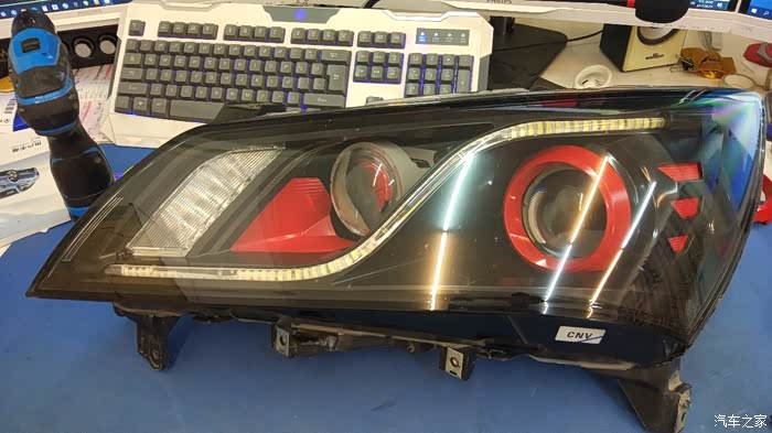 然后是再喷漆,近光位的灯罩和侧面也给喷成红色了【拆下来单独喷】。为啥不改天使眼恶魔眼?上红色的多好看?我只能说,天使眼恶魔眼玩过了,灯光这玩意儿,五彩斑斓亮的越多越low,越有汽配城的味道。以后的灯光要开始玩格调了~