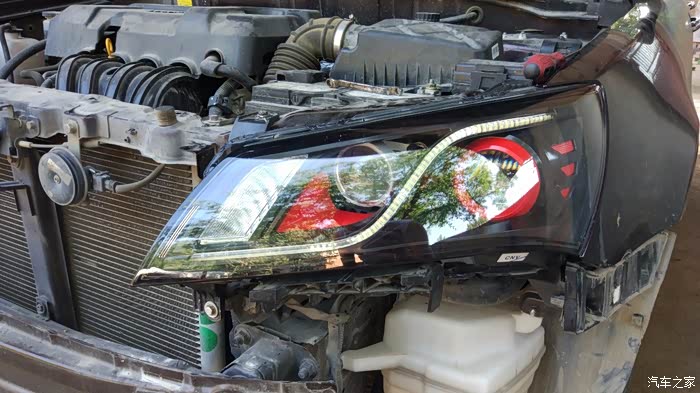 好!回归正题,开始干活。第一件事儿拆车,保险杠各种螺丝拧下来就ok了,没难度,注意日行灯的线比较短,别给拽断了。大灯一共四颗螺丝,也比较好拆。