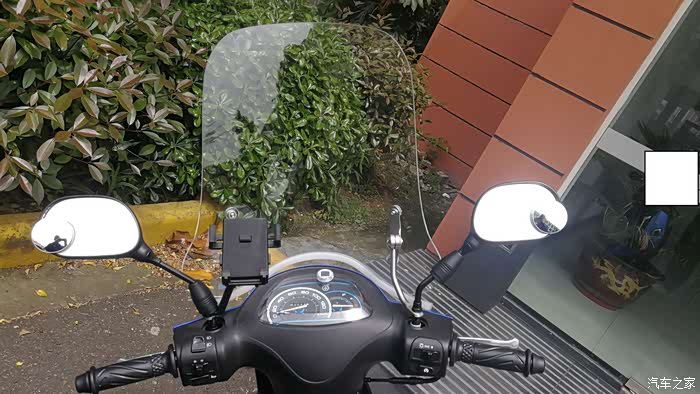 看了论坛里车友的帖子,我也加了一些装备。风挡、头盔锁、小圆镜、电子钟,今天加了手机支架。尾箱是买车时送的。