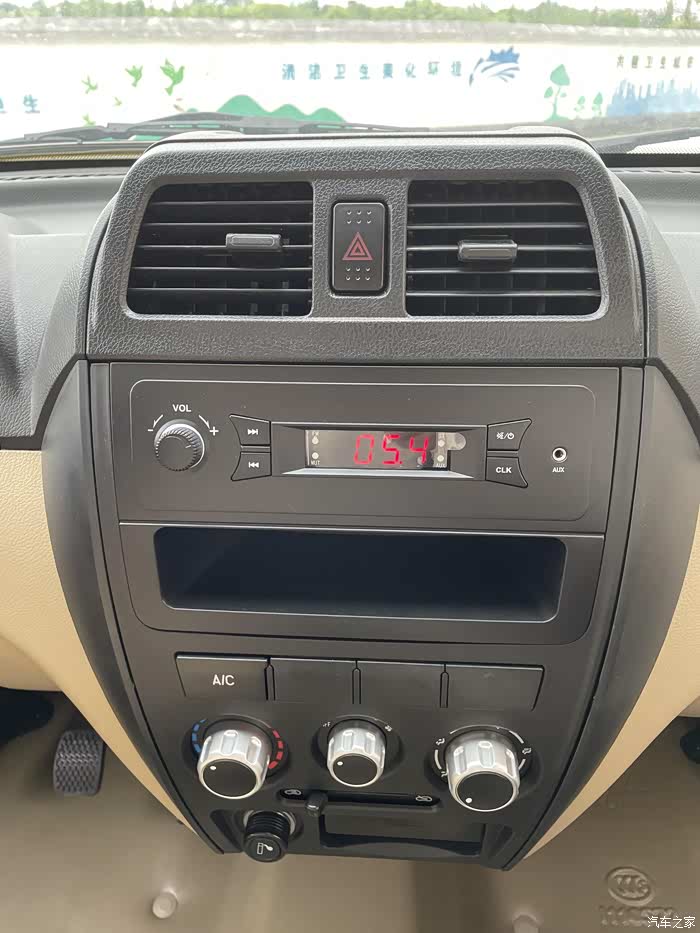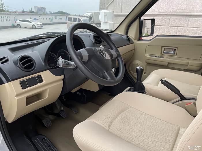 车内的设计也是大大方方的,上身下浅的搭配很符合我的审美,整体布局非常合理规整,三幅式的方向盘,喇叭按键区都是全浮式设计,实用也方便,就是方向盘是塑料的,握感可能没有皮质的好,但是毕竟是货车也不能和家用车来相提并论,全系还配电动助力转向,平时操作也方便,车内的手动空调,收音机,机械手刹,织物的座椅,都是很不错的,织物的座椅透气性好。
