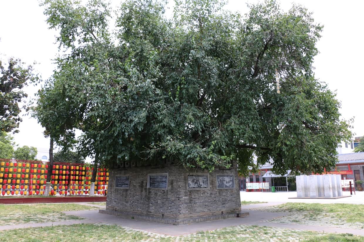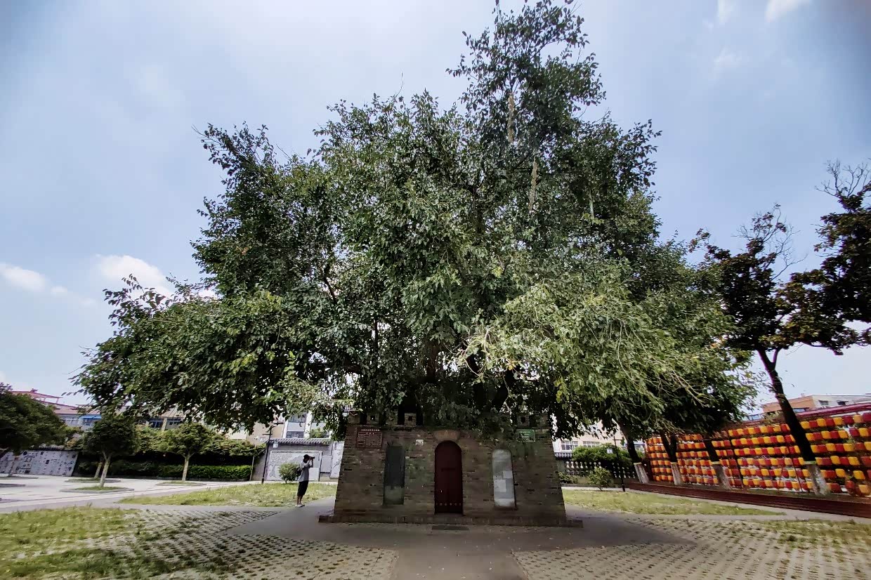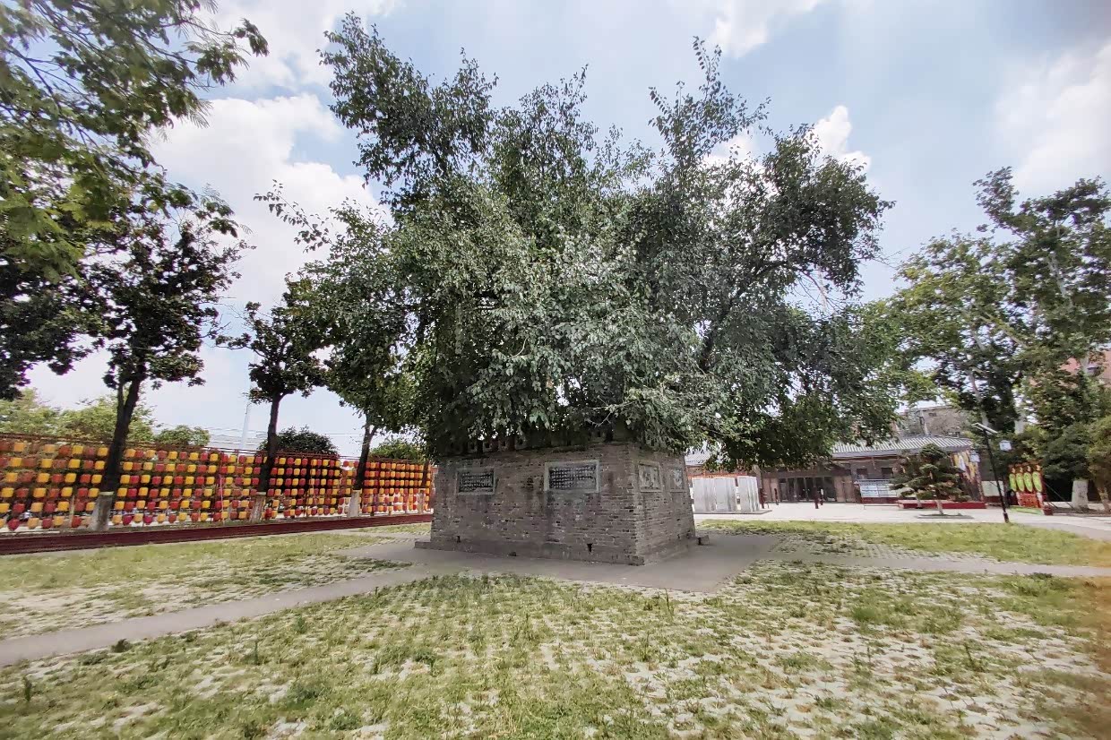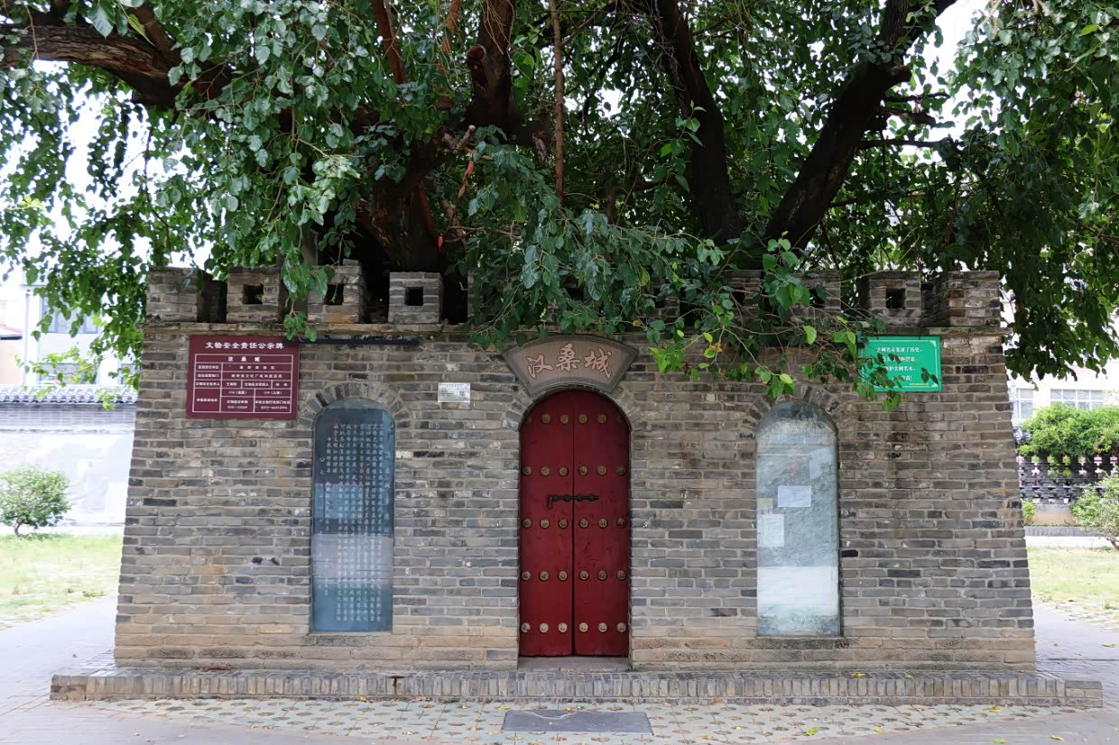 汉桑城全貌,其实就是一棵桑树周边用砖砌墙围绕而成的建筑。