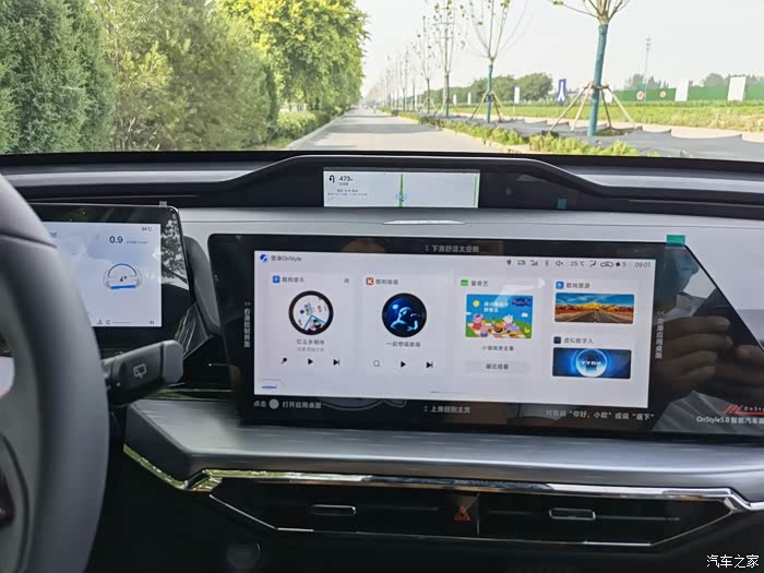 1.三层式的中控台是我的最爱,导航可以放在最上面屏上,再也不用低头看,安全系数大大提高。2.多功能方向盘,简单的按键而又不失功能性,熟悉了之后发现好方便,换挡拨片可调驾驶模式,自适应巡航下可调巡航速度,手动模式可加减档,一键加油按钮也惊艳到我,这是在别的车上没有见过的。3.车机系统很流畅,三块屏幕清晰度也很高。