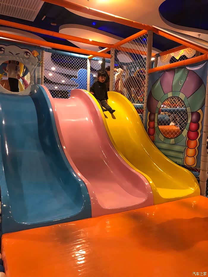 上午我带大宝去儿童游乐场去玩,她最喜欢的就是这个矮矮的旋转滑梯了,一上午有三分之一的时间都是在玩这个项目。