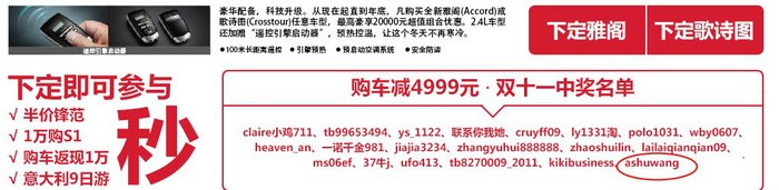 前后去过万江、虎门、长安、厚街、南城五家店看车砍价。万江、虎门、长安价格比较坚挺,谈到27万就很难谈下去。厚街价格最好谈,销售丁小姐人也比较实在,差点就落订了。后来有朋友认识南车店的人,能拿到一个比较优惠的价格,于是最终去了南城店提车。在南城店落地价是26.71万,送6张机油券和其他一些常规东西。由于我在双十一参加了广本天猫店的活动,当时是交1111元定金当2111元用,就是优惠1000元。那个活动有抽奖的,结果额外中了4999元。就是等于厂家额外优惠了6000元。所以最终落地价我是给了26.11万,这价格应该还是比较给力的。建议有购车打算的车友可多关注广本网站和它的天猫店,不时有活动的。但购车也有一个比较不爽的地方,就是当时签合同是没有很仔细看,当交车时才发现保险里面居然没有划痕险。这怪4s不厚道,也怪自己粗心。