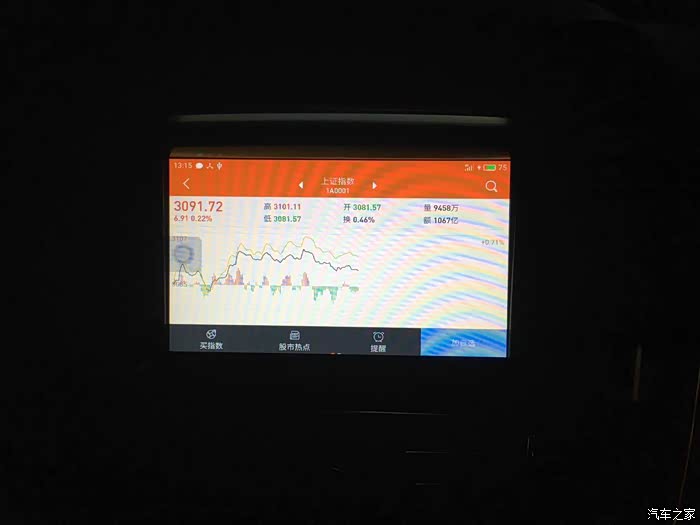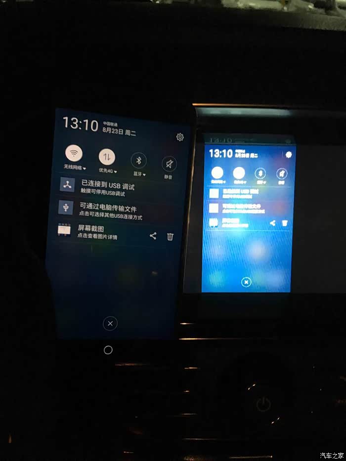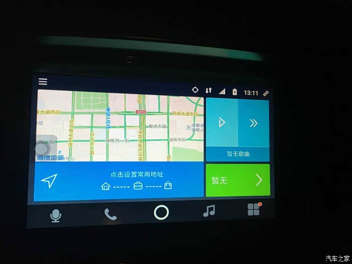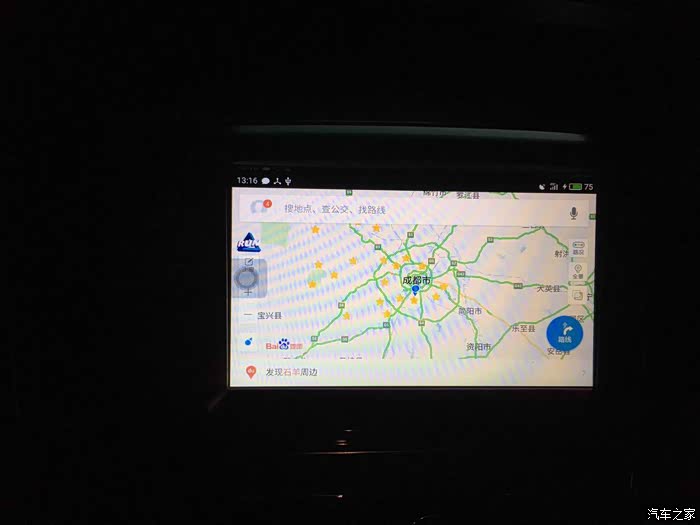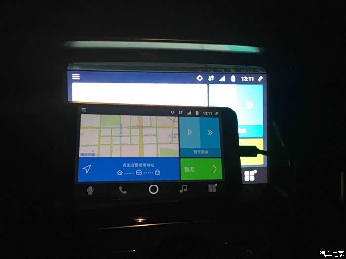 此时手机和汽车屏幕的显示是同步的。注意,此时手机屏幕一直打开,有点费电、发热,不过因为手机用USB线连接,所以同时也在充电。