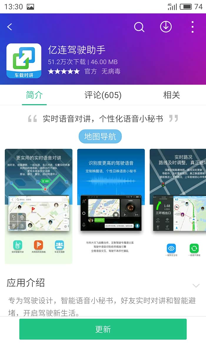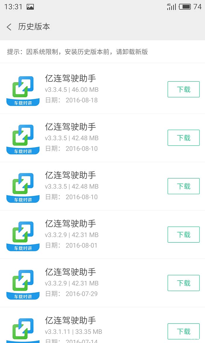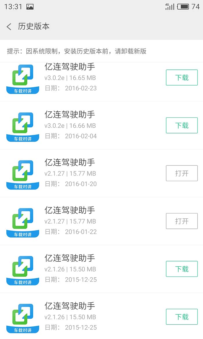 实际上安卓手机市场里,还有叫“亿连驾驶助手”的,我以为是同一个,上次下载了,但不能实现“车机互联”。所以建议直接使用连接车机时提示安装的“亿连”APP,连接成功率更高。