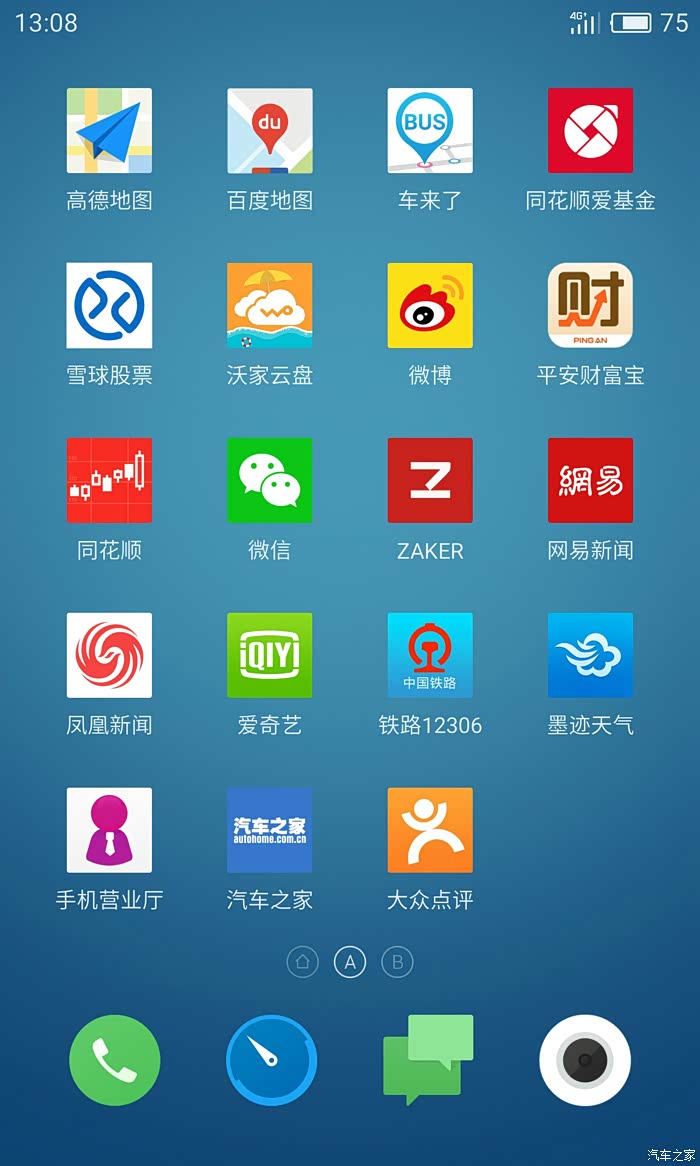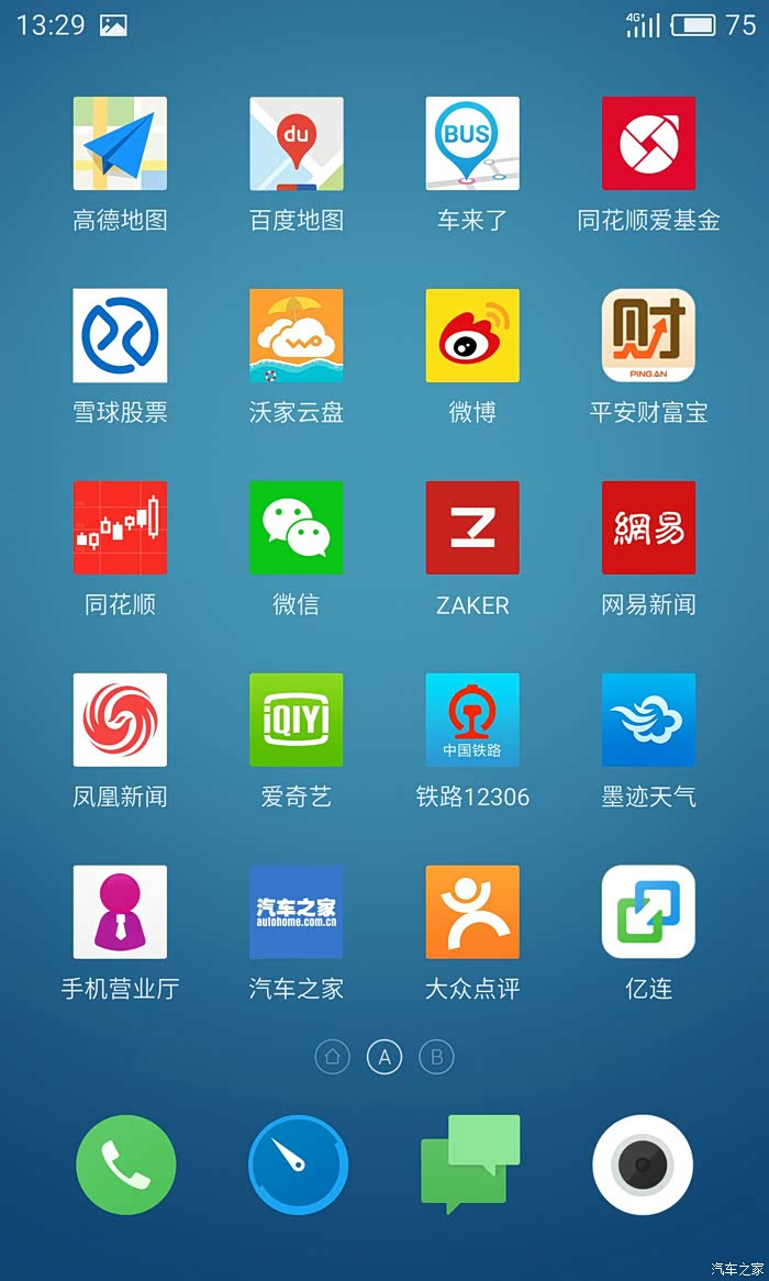 “亿连”的初始界面,注意这个页面里的高德地图跟后面APP页面里我自己添加的高德(就是手机上安装的高德APP)是不会共享离线地图的,各用各的。用手向左滑动页面,可以进入APP设置页,就是将手机上的APP选择一些放到汽车屏幕上来。