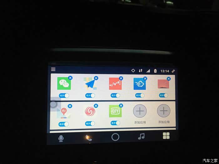 汽车屏幕上显示的当前手机上安装的APP,你可以点击选择加入“车机互联”。