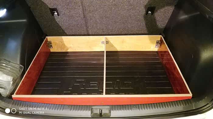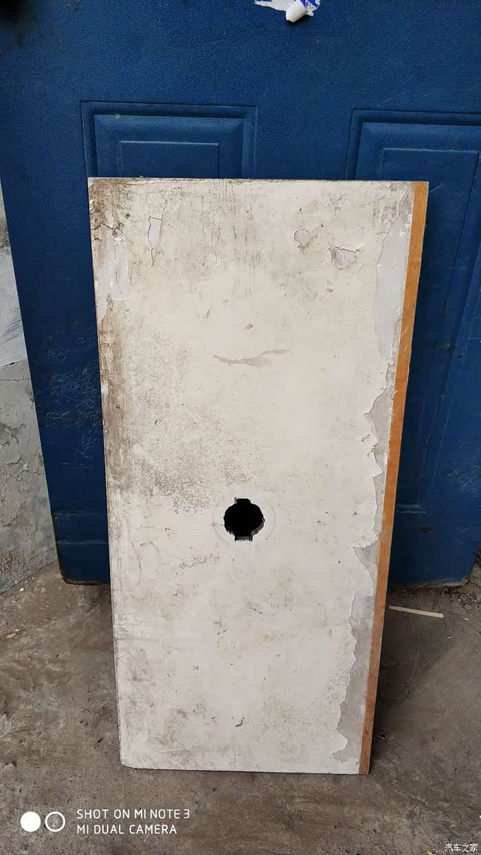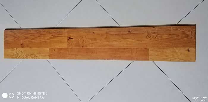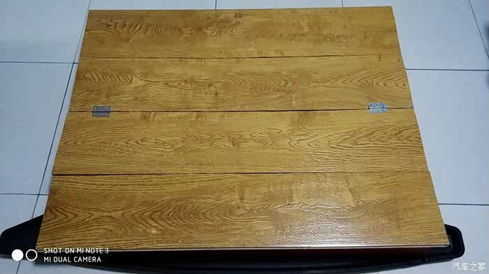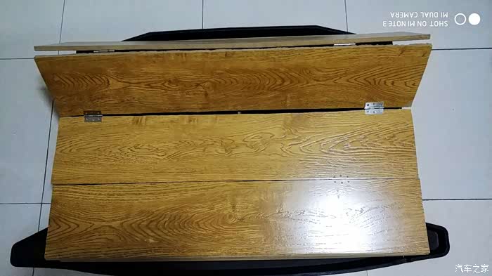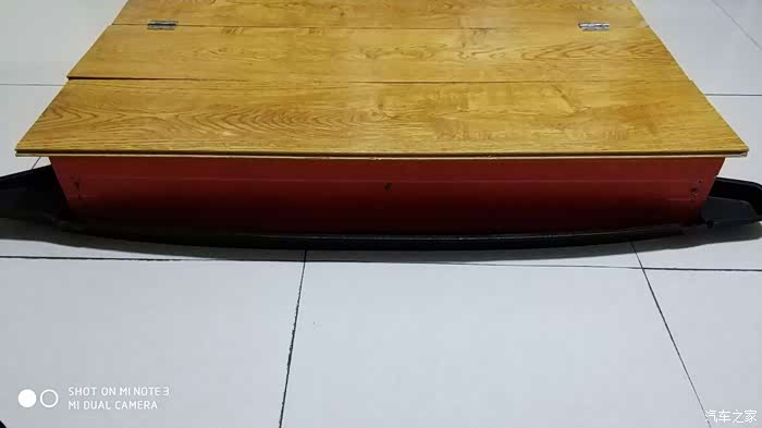 五一出游玩了两天,回到家后,觉得后备箱盖板靠近后座椅上的两块木板有些窄(睡觉有些塌陷)影响平整度,还需要小改一下,盖板去掉一块改为三块,另加一块宽的木板就可解决。所以在楼下垃圾处找了一块大小比较合适的木工板(再加工一下)。