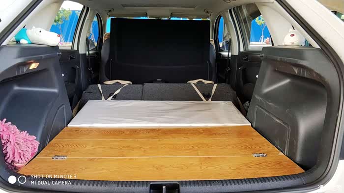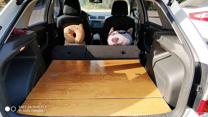 而且此板在只放到一个后排座椅后,将木板顺长放上,可睡单人,哈哈超美。