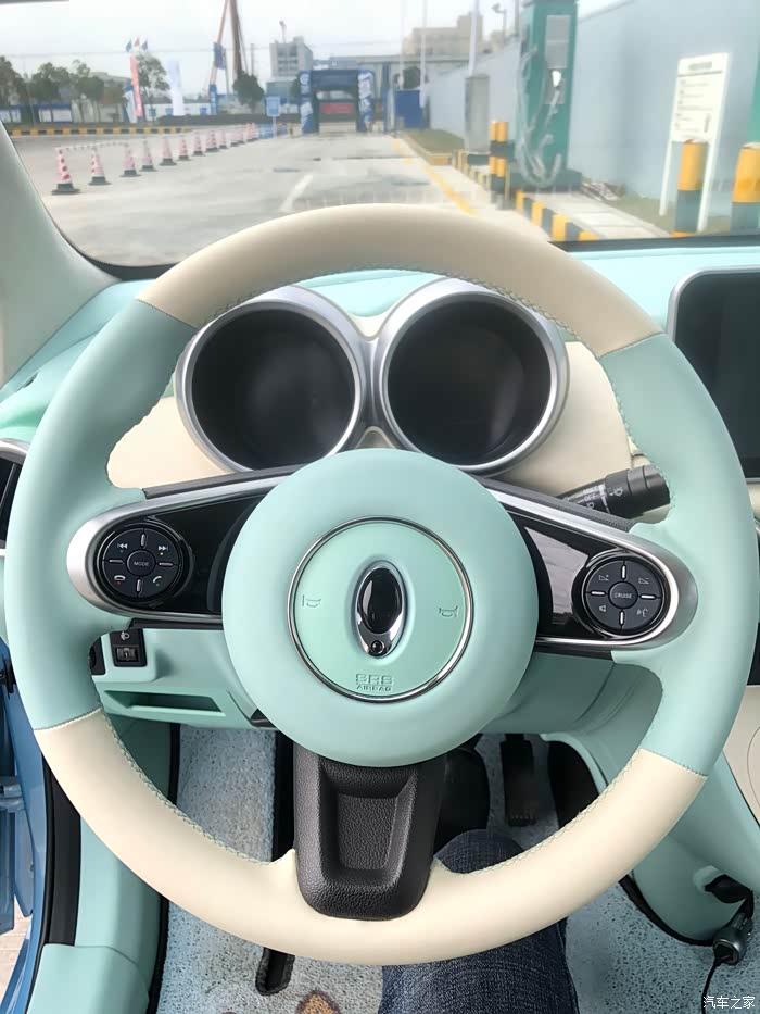 方向盘包了纳帕真皮,中间喇叭那为喷漆。
