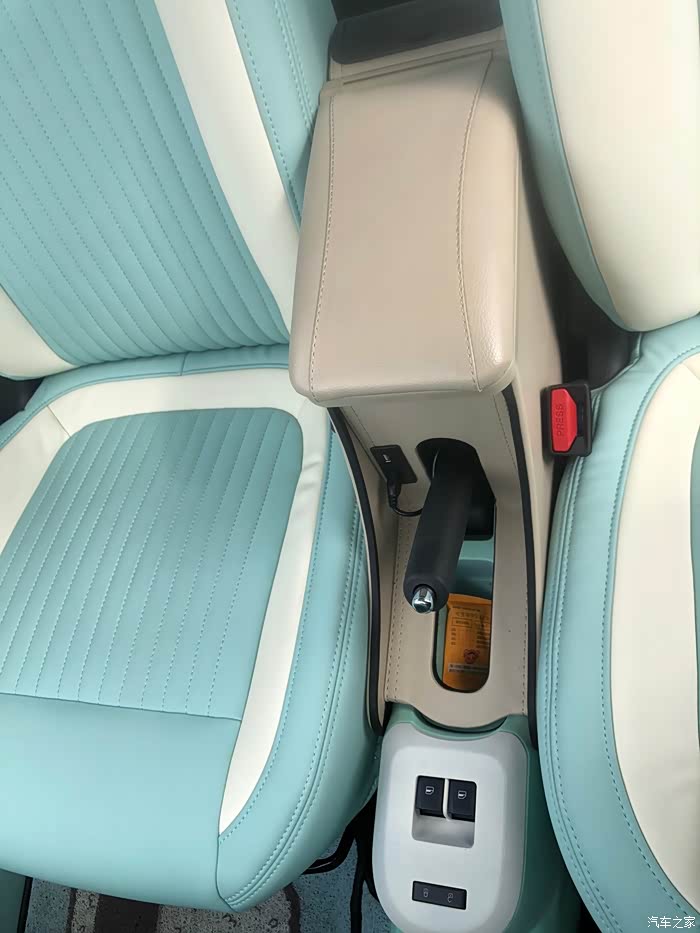 中控台,储物箱全部真皮双拼,出风口是喷漆
