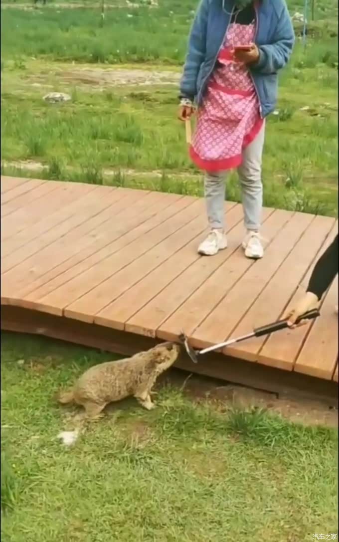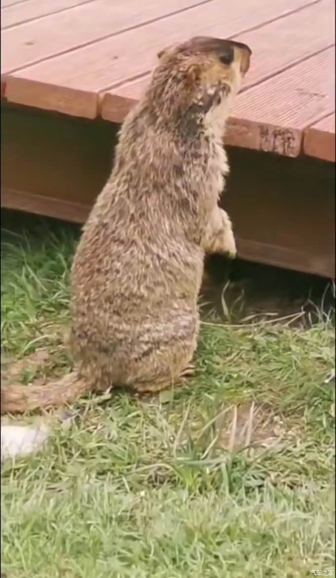 这是一只好奇心重的土拨鼠,凑到手机自拍杆前,左看右看,想一探究竟。