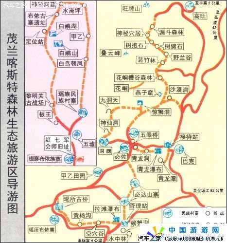 游:茂兰有大小景点二三十个,旅游路线可根据需要随意组合。茂兰最主要的游览点是凉水井峰从、三岔河山水瀑布、漏斗森林穿越、野生动植物、各种神秘洞穴以及尧古布依族家访等。