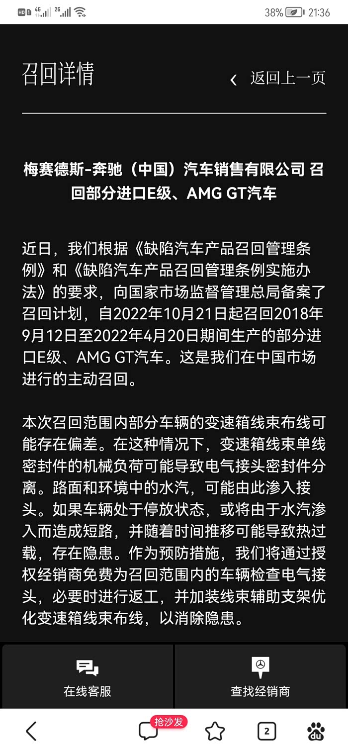 奔驰官网上的召回