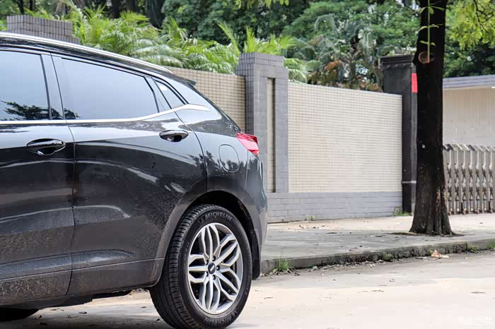 轮圈像花瓣一样,配备的是米其林的轮胎