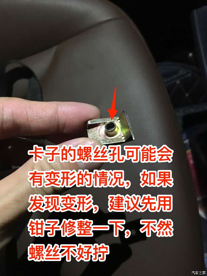 分享一点个人心得,先拧靠车门的那颗螺丝,手可以伸到卡子的位置来定位螺丝,比较好拧,先拧一点进去,保证螺丝不会掉下来就行,然后拧里面那颗螺丝,里面那颗螺丝可以先趴下去用手电照抽屉支架的螺丝孔,看看有没有跟卡子的螺丝孔对齐,如果没有,就用手微调一下卡子的位置,直到基本对齐了再拧螺丝,这样会比较好拧进去,两个螺丝都拧进卡子以后,再分别拧紧就可以了。