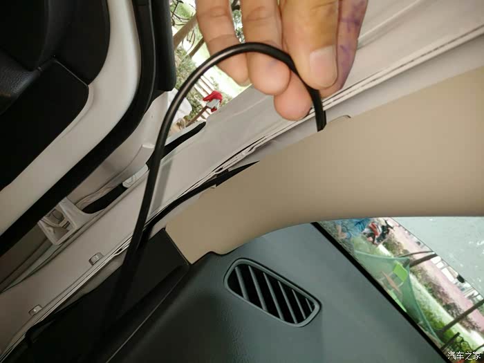 看到我的手没?车顶绒布可以掰开的,不会断,不用担心这个问题,大胆的走线。