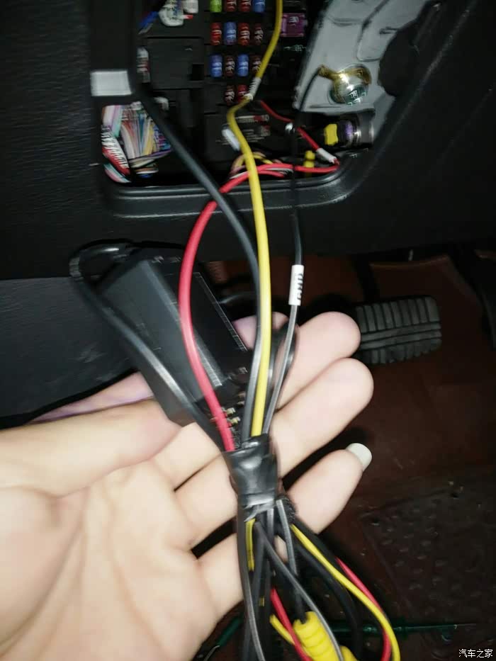 把你记录仪的电源头从这里穿出来。