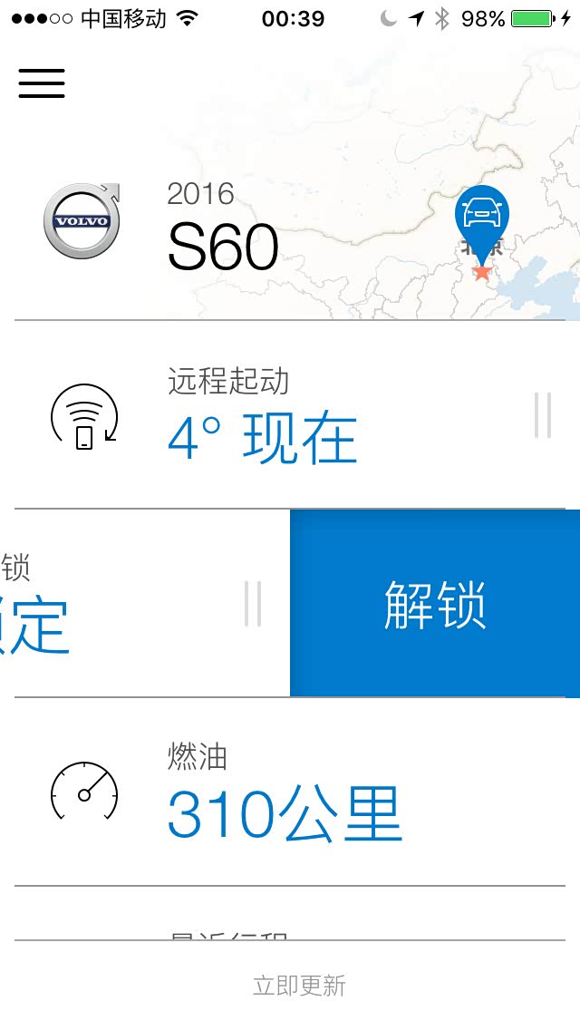第一,远程解锁,这个解锁可以启动空气置换系统,如果车在院里,自己大概五分钟内要走,可以一边和朋友寒暄一边用手机app启动解锁,让车里的空气净化一下。远程解锁是先解开后备箱,若朋友去帮你到车里拿东西,一定要先打开后备箱,然后才能打开其他门。