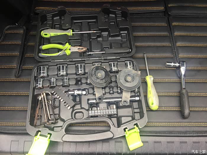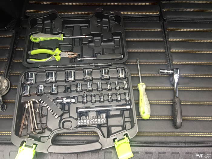 开始拆装,工具必须齐全,实际上一把12的扳手就够了,螺丝刀是用来按卡口上的圆点的,如果你的指甲够硬完全用不到螺丝刀