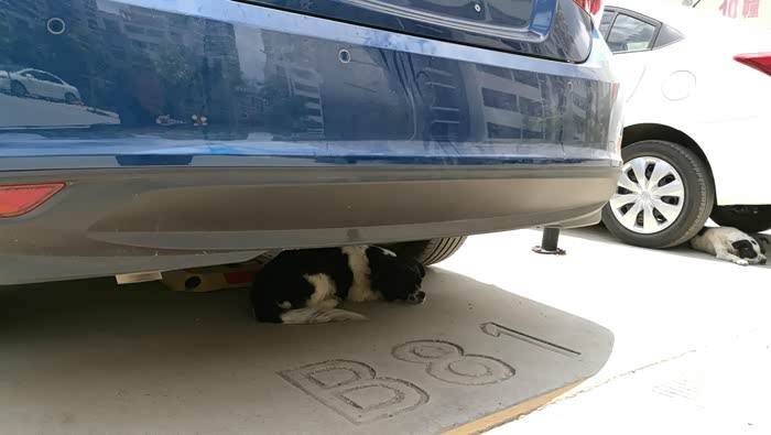 花絮:今天我去开车,还没走到车前,突然发现车下有物,蹲下一看,居然是条狗狗,不知是哪家的,估计是小区哪家的。你也太会休闲了吧,跑这避暑来着