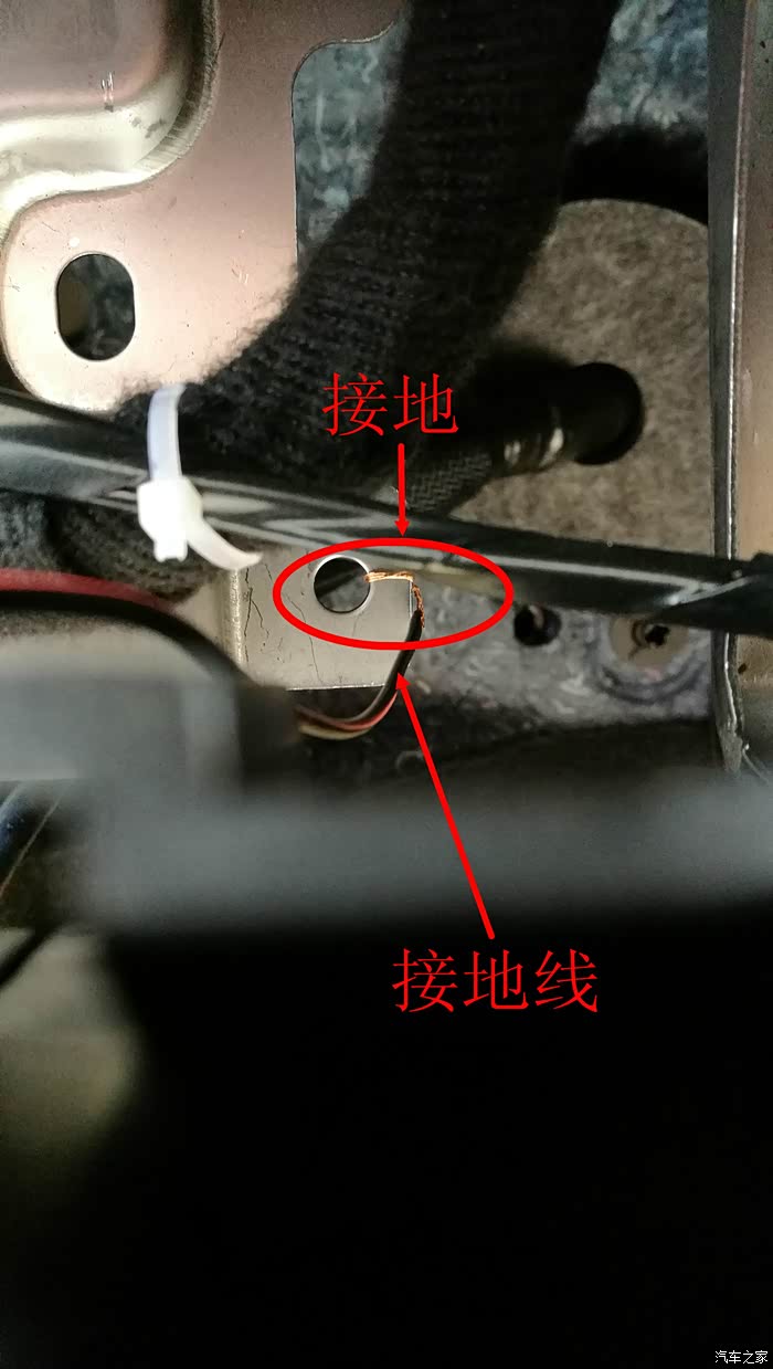 用黑色的线引一根地线,接在仪表台金属部位上,我是接在这里,待会再用螺丝固定下接地线,这下还忙不赢