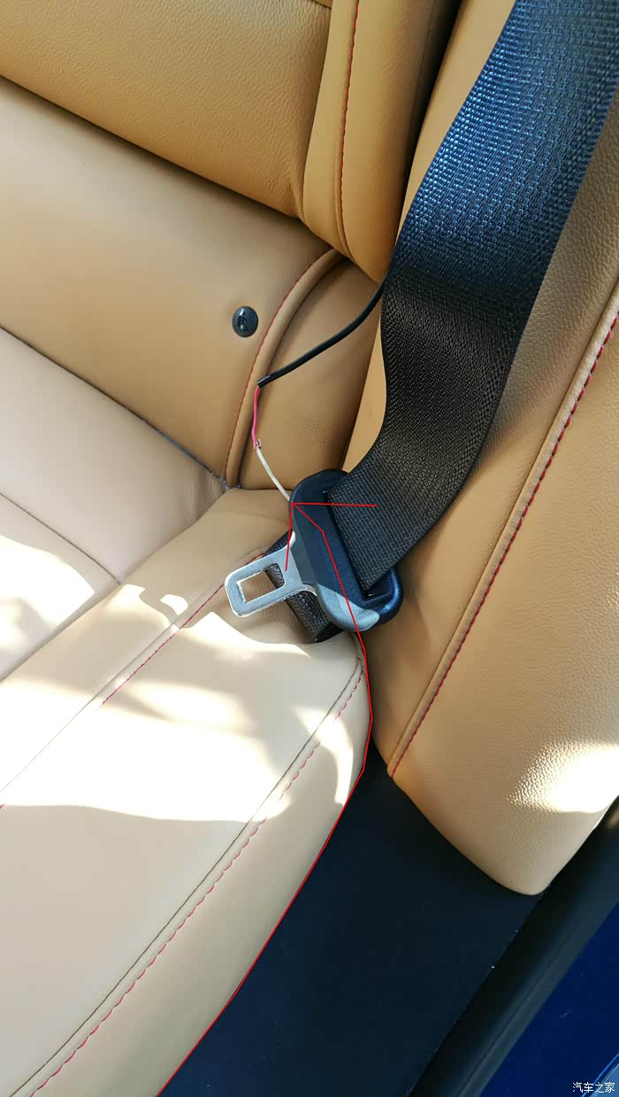 注意,塞线的时候要穿过安全带下方