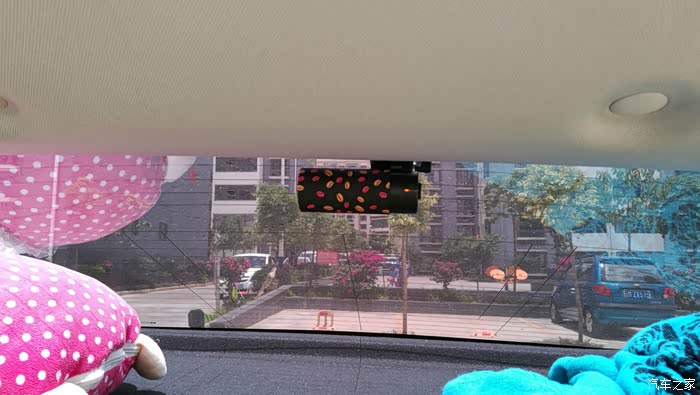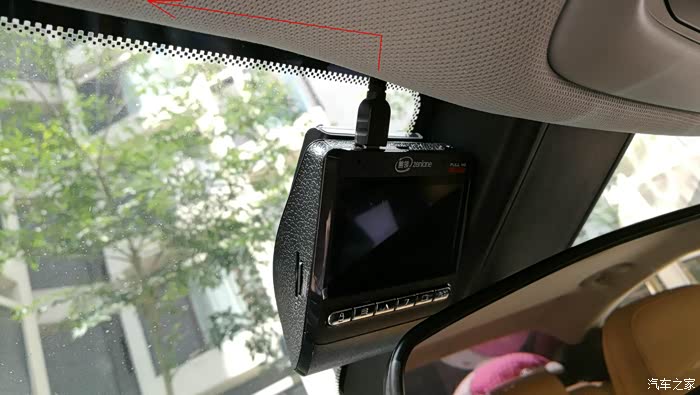 把前视行车记录仪粘在前档玻璃上,插上电源线,将电源线按照我标的线路布线