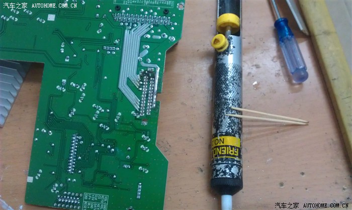 接着上道具,牙签,吸锡器,把电路板ic的孔掏空出来