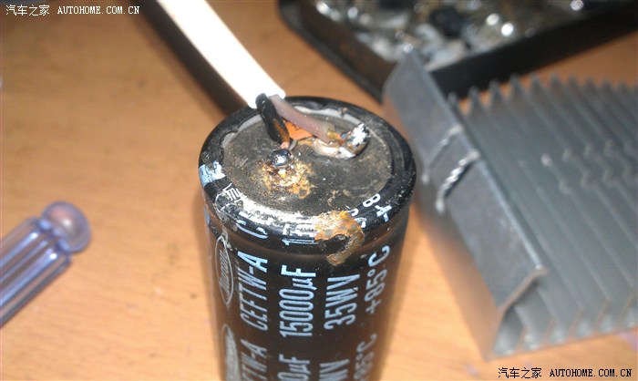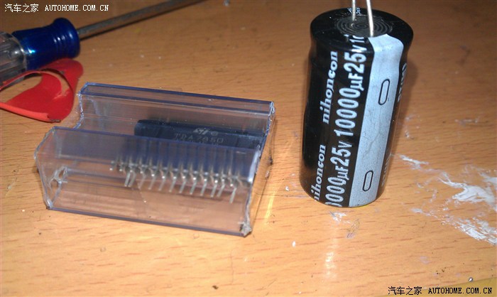 接着拆电容,商家送的那个电容没用上,看上去也不怎么样10000uf/25v的,体积跟容量有点不相称,印刷也.........还是用回以前玩音响留下的