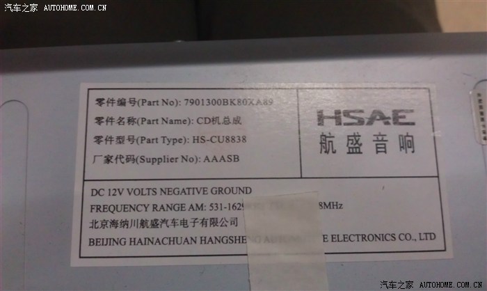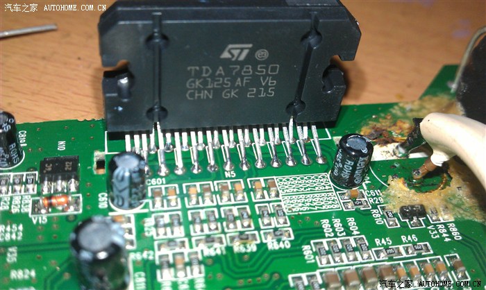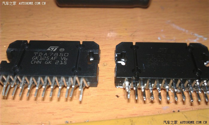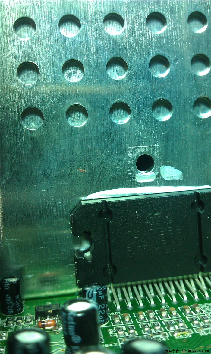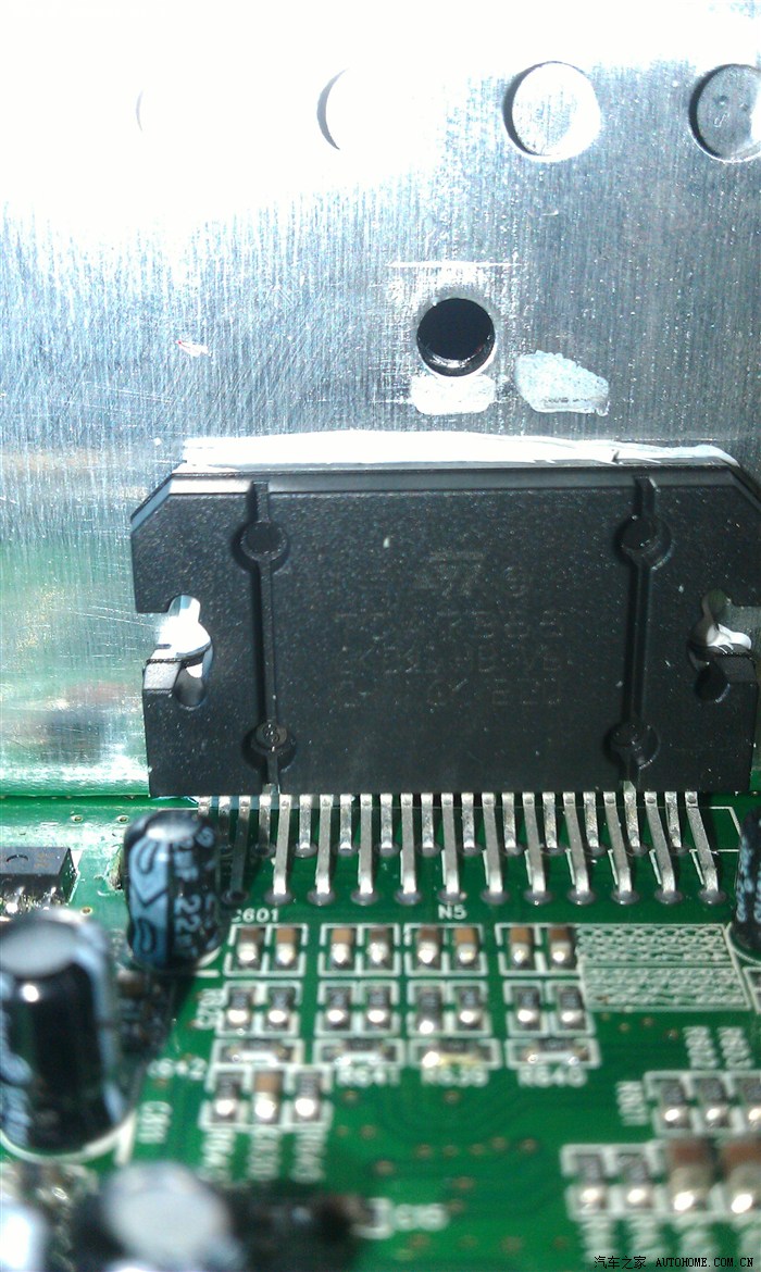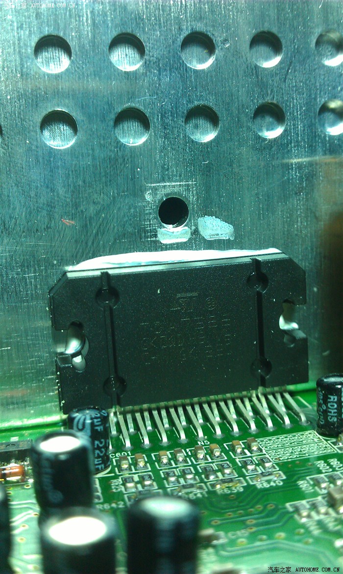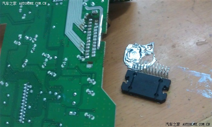 改喇叭后,喇叭的功率大了,原来的功放带不起效果,查看了几个网友的改装贴,最后还是不换原车音响,改功放ic。由于当时不知道原车音响的功放ic是什么型号的,所以就拆开两次了,第一次拆开看型号,买件,又装回,零件到了又拆一次,现在告诉大家,免得想改的同学多走弯路,h5欧风2.0豪华版的车机音响是航盛音响型号是HS-CU8838,里面的功放芯片是tda7388,完全可以用tda7850替换,至于为什么要用tda7850来替换,大家百度一下吧,主要是tda7850是