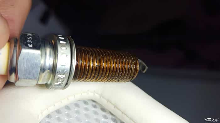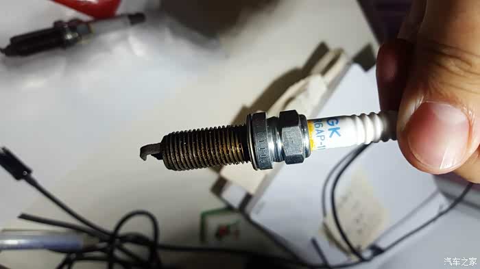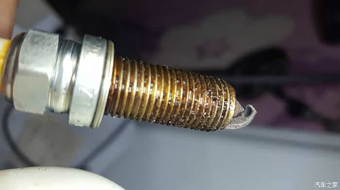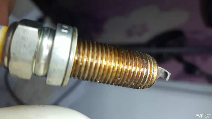 换下来的火花塞,7万了有明显的烧出了坑,所以建议5万公里就应该换了,换了电装双铱金,动力却是好,抖动减轻了,低速再给油加速声音好听了。