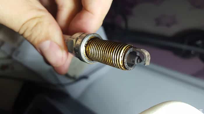 换下来的火花塞,7万了有明显的烧出了坑,所以建议5万公里就应该换了