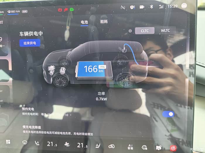 插上放电枪后,在车机上点下开始供电,然后就可以对外放电啦!