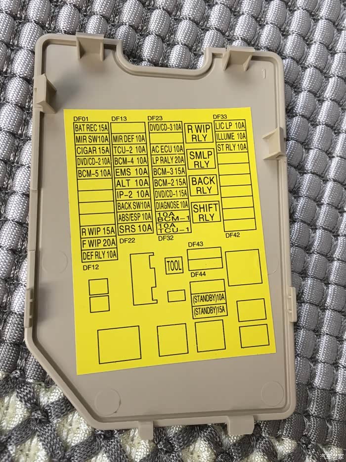 不知道是这里的那一个,或者是发动机舱里,第一排第三个是另外一个点烟器的保险丝,12V120W的就不知道是那一个了。