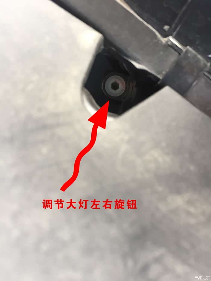 大灯左右调节旋钮!位置大灯两侧靠近叶子板处!这个左右调节方向不记得了,自己调节一下试试!不过最好在墙上做好标记!