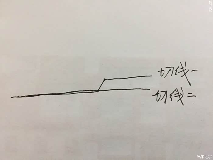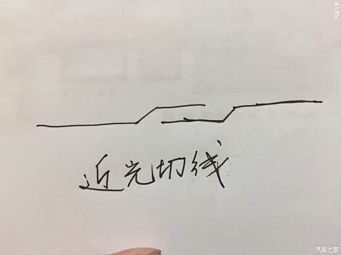 近光灯,挡住上边的两个灯的任何一个就能看出每个近光灯是由两条线重叠而成的切线,正常切线应该是切线一和切线二重合。