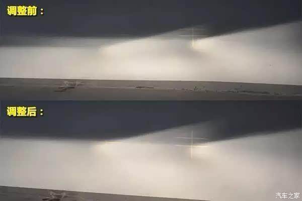 错误的灯光高度极易造车行车安全的隐患,这就为您讲解一下大灯高度的正确调节方法,确保行车安全。上边是调节不当的效果,下边是正常效果。